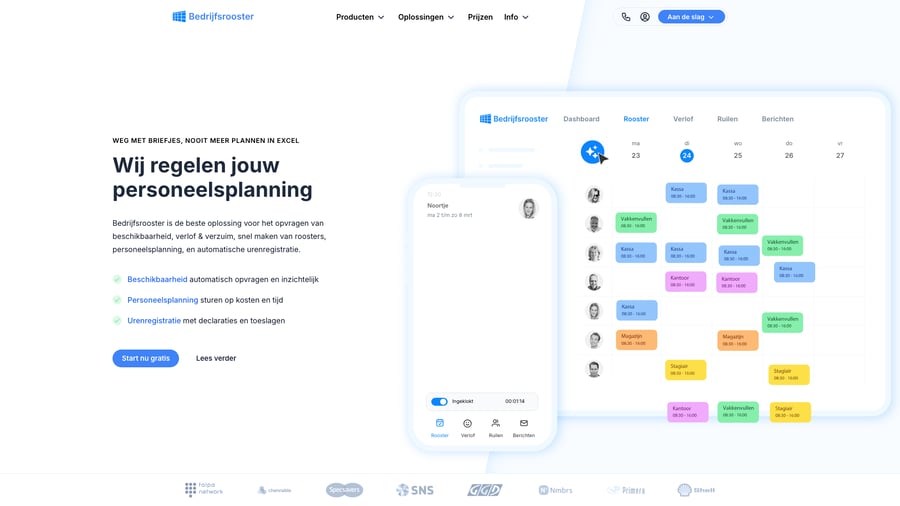 Built the marketing website for Bedrijfsrooster, a Dutch workforce planning SaaS. The site explains scheduling, availability, time tracking, and leave clearly for different industries, while editors can publish updates without developer support.